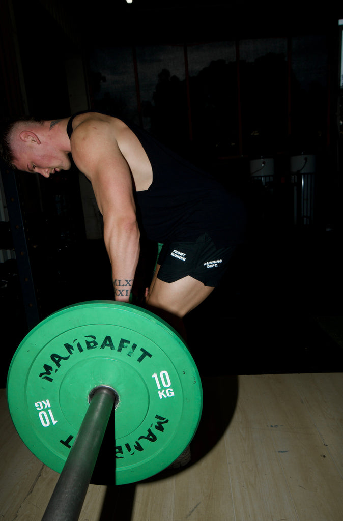 Styled with our Running Dept Singlet - Black & FRNTRNR Taper Tank – Black
